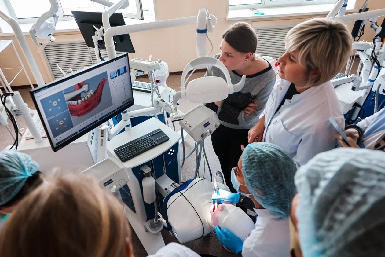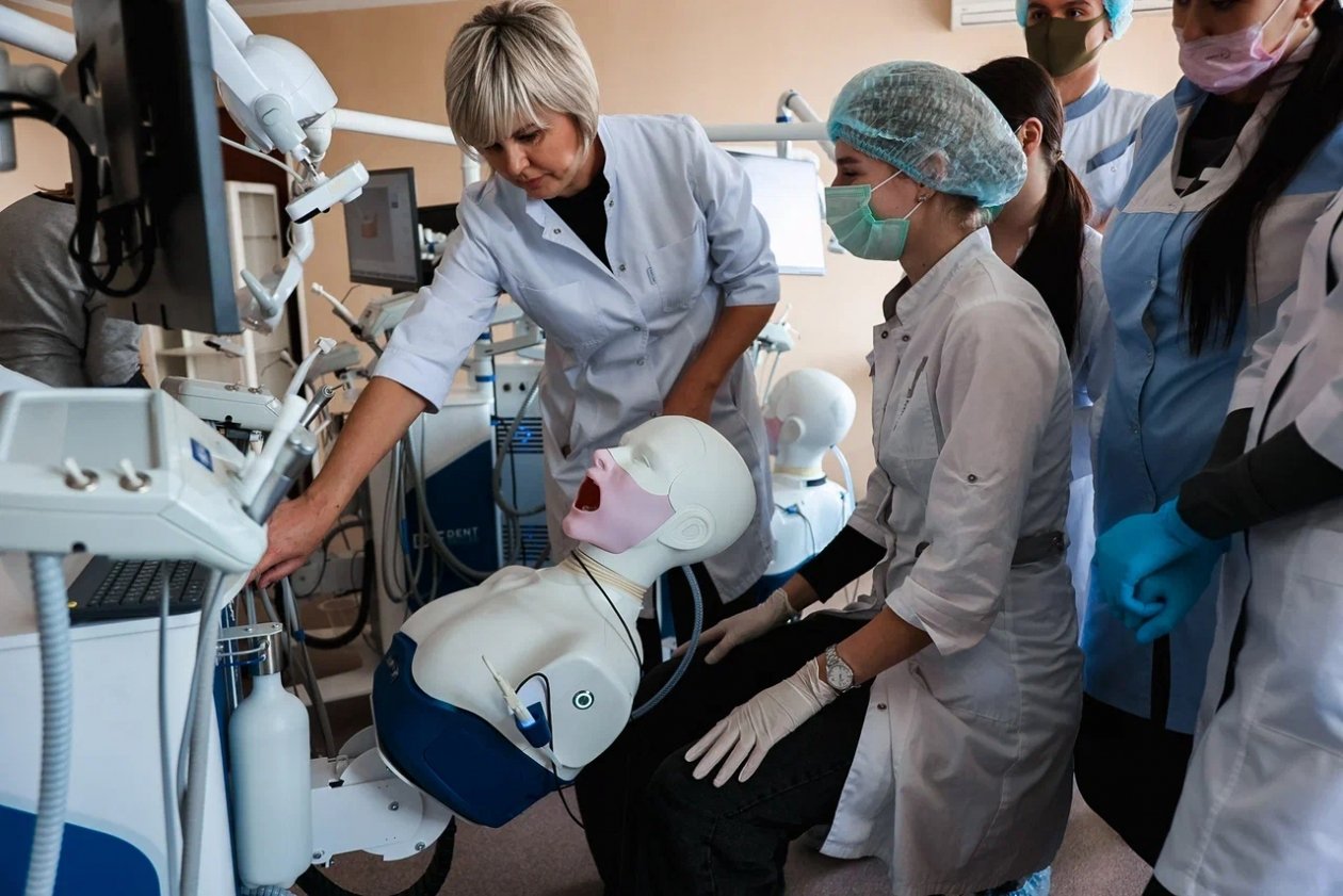 Изначально практическая подготовка ведется на базе отдела симуляционно-тренинговых технологий по стоматологическому профилю института симуляционных и аккредитационных технологий университета, который оснащен мануальными digital-манекенами, то есть современными интерактивными тренажерами. Эти симуляторы позволяют оттачивать практические мануальные навыки с использованием компьютерных технологий. Здесь воспроизводится реальная клиническая ситуация, на которой студент должен отработать или продемонстрировать практические манипуляции с "пациентом".