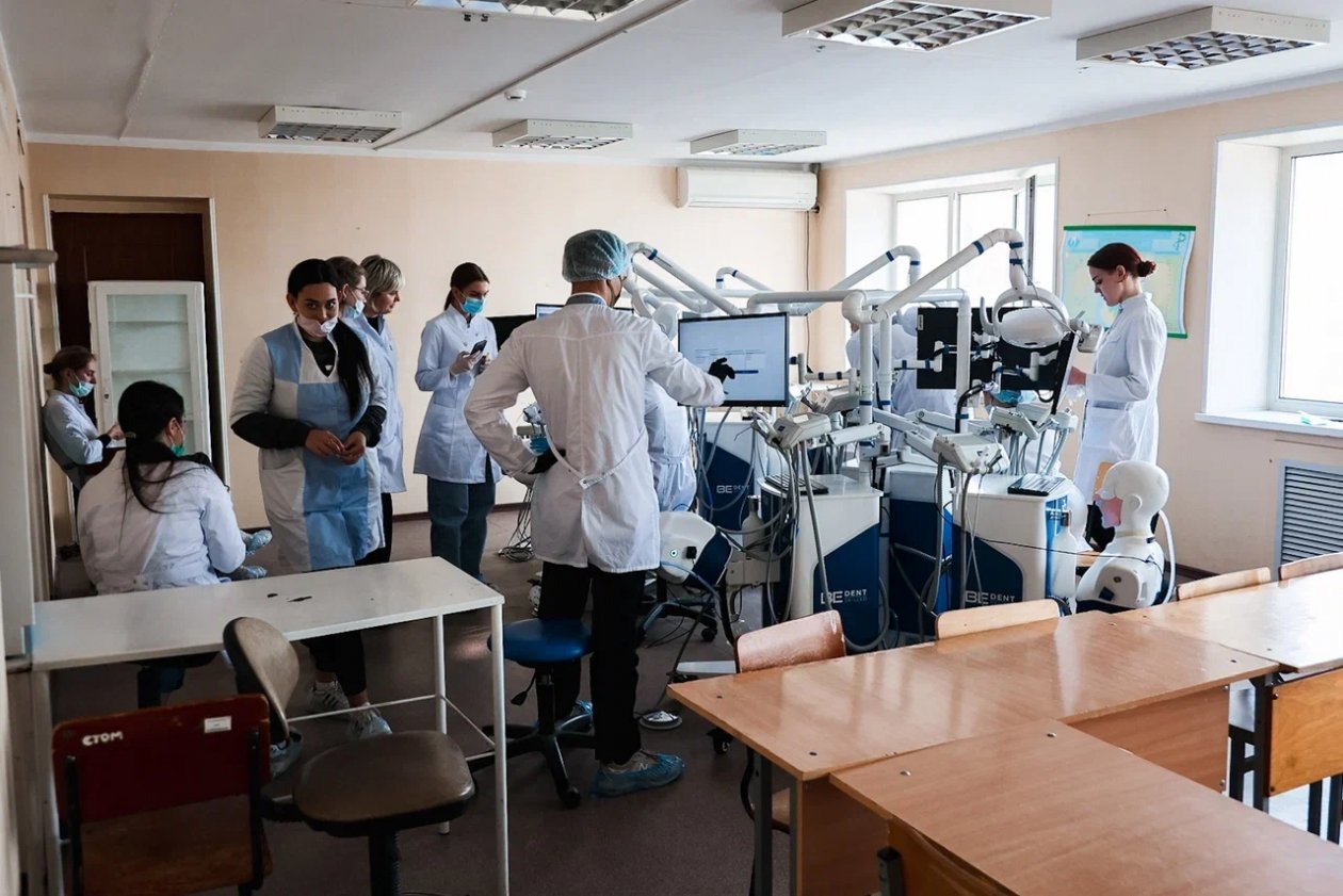 — Сейчас поступили шесть современных тренажеров для подготовки студентов специальности "Стоматология". 10 лет назад у нас было иностранное оснащение, к которому сложно было найти комплектующие, поэтому те "фантомы" бывали зачастую не задействованы, к тому же со временем оборудование морально устарело. С тех пор парк мануальных стоматологических тренажеров несколько раз пополнялся, не считая частных замен,