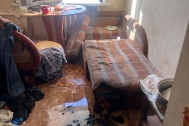 Тогда женщина разбудила мужа и сына, и им удалось вовремя покинуть дом. Во время эвакуации 67-летний мужчина получил ожоги. Пострадавшего передали бригаде скорой помощи.