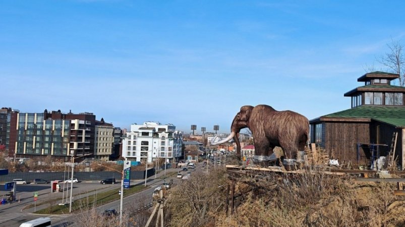 AngarskMedia, 27 октября. В Иркутске на улице Коммунистической установили монументальную скульптуру мамонта. Она расположена рядом со строящимся "Домом природы" иркутской зоогалереи.