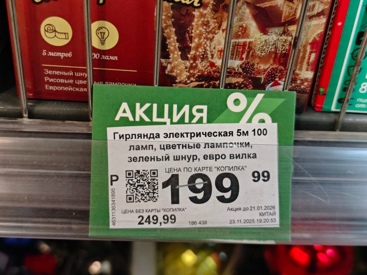 На рынках гирлянды продаются по ценам от 300 рублей до 1 тысячи рублей. Здесь можно найти гирлянды-нити длиной от 2 до 50 метров, а также занавесы, сетки и бахрому для дома и улицы.