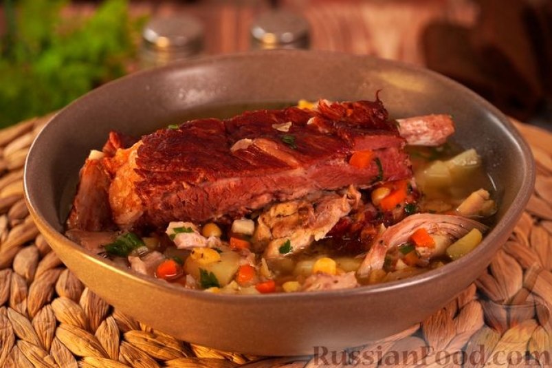 Насыщенное и ароматное первое блюдо, в котором мягкий горох сочетается с дымным вкусом копчёных рёбер и нежностью куриного мяса. Об этом сообщает ИА AngarskMedia.