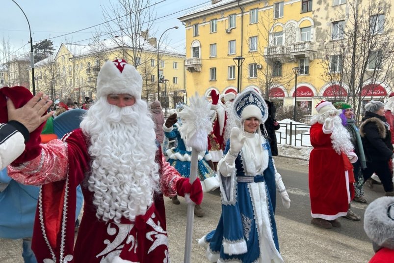 AngarskMedia, 15 декабря. В Ангарске в марше Дедов Морозов, Снегурочек и других сказочных персонажей (0+) приняли участие почти 200 человек 13 декабря. Колонна с жителями, одетыми в разнообразные костюмы, стартовала от Дворца ветеранов "Победа" и прошла до площади Ленина, где состоялось открытие (0+) новогоднего городка и елки.