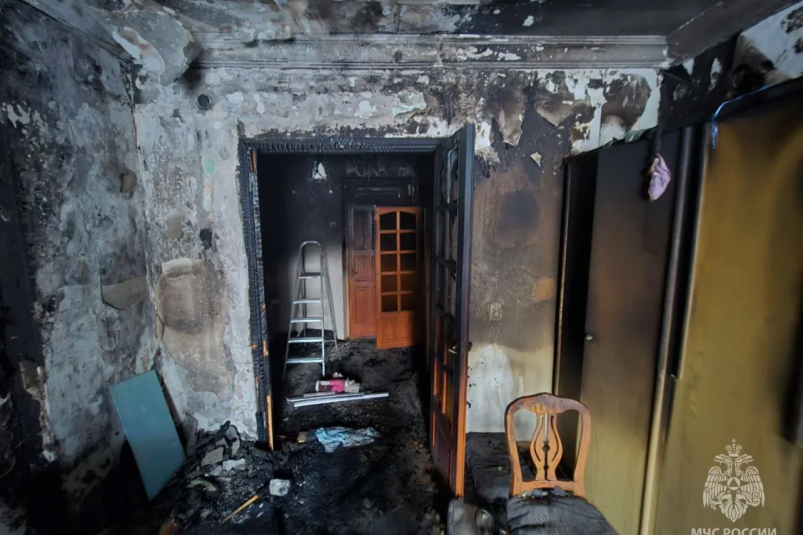 Сотрудниками ведомства в горящей квартире в комнате на полу была обнаружена 86-летняя женщина. С отравлением угарным газом ее госпитализировали.