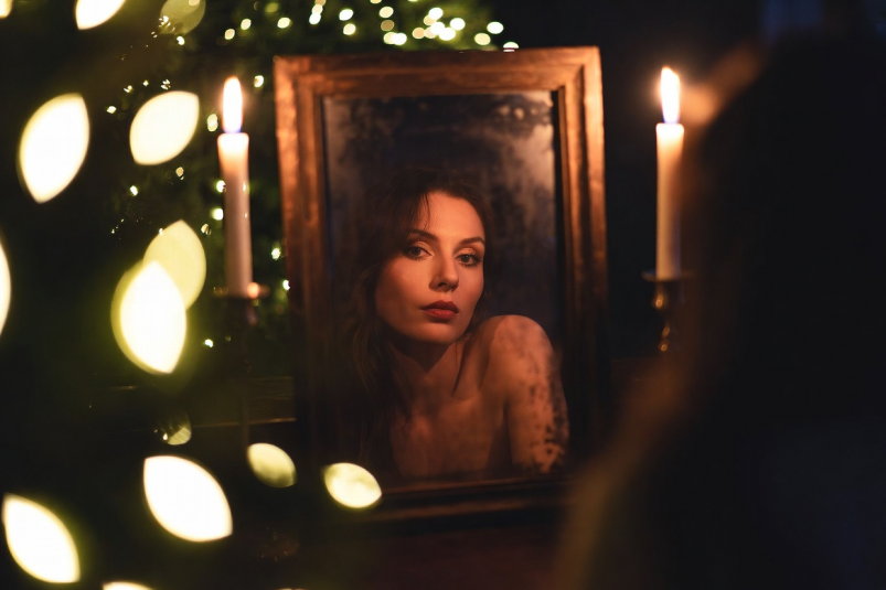 Одним из самых известных и распространённых способов гадания на Рождество является использование зеркала. Этот метод достаточно прост: в полночь перед Рождеством, по старинной традиции, женщины садились перед зеркалом с зажженной свечой и пытались увидеть в отражении своего будущего мужа или судьбу на следующий год. Если в зеркале появлялся чей-то силуэт, это считалось знаком скорой встречи с этим человеком.
