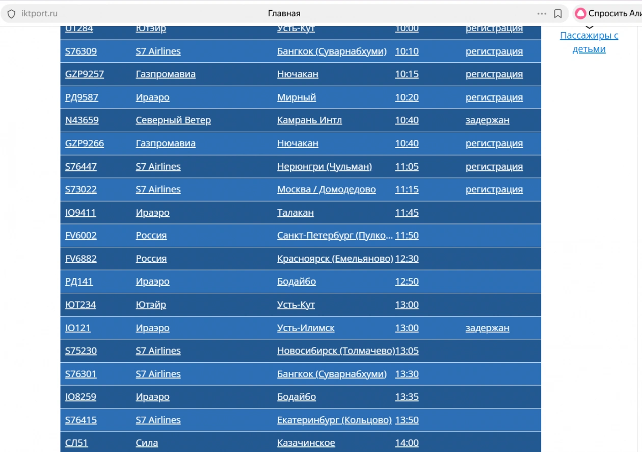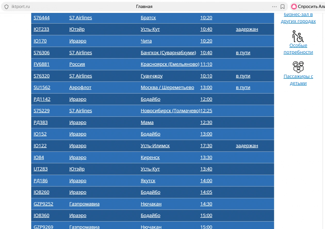 AngarskMedia, 12 января. В аэропорту Иркутска задержаны шесть рейсов, включая как прибывающие, так и отправляющиеся сеегодня. Самолеты, следующие в Камрань Интл, Усть-Илимск и Москву, вылетят позже запланированного времени. Борты из Усть-Кута, Усть-Илимска и Владивостока прилетят с опозданием.