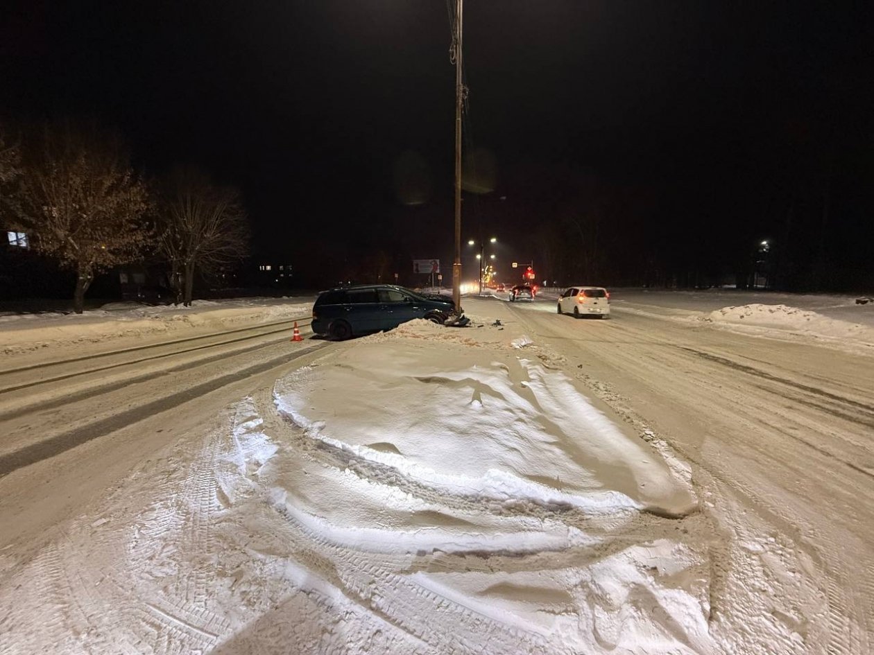 Вечером этого же дня на улице Космонавтов женщина за рулем Toyota Corolla Fielder не обеспечила безопасную скорость и врезалась в столб.