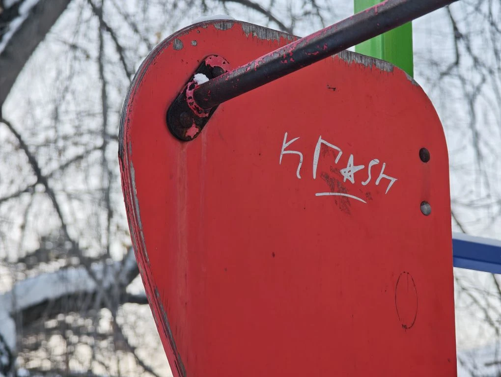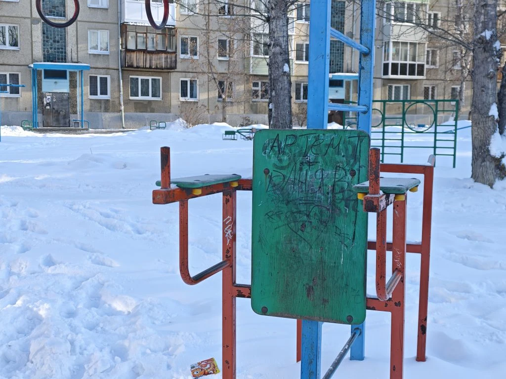 Во время прогулки в 177-м квартале внимание корреспондента привлек внешний вид площадок во дворах домов №10, №9 и №19: металлические конструкции местами покрыты ржавчиной, краска на качелях и лазалках облупилась, на отдельных деталях элементов заметны сколы. Кроме того, многое игровое оборудование исписано различными надписями, которые еще больше предают площадкам заброшенный вид.