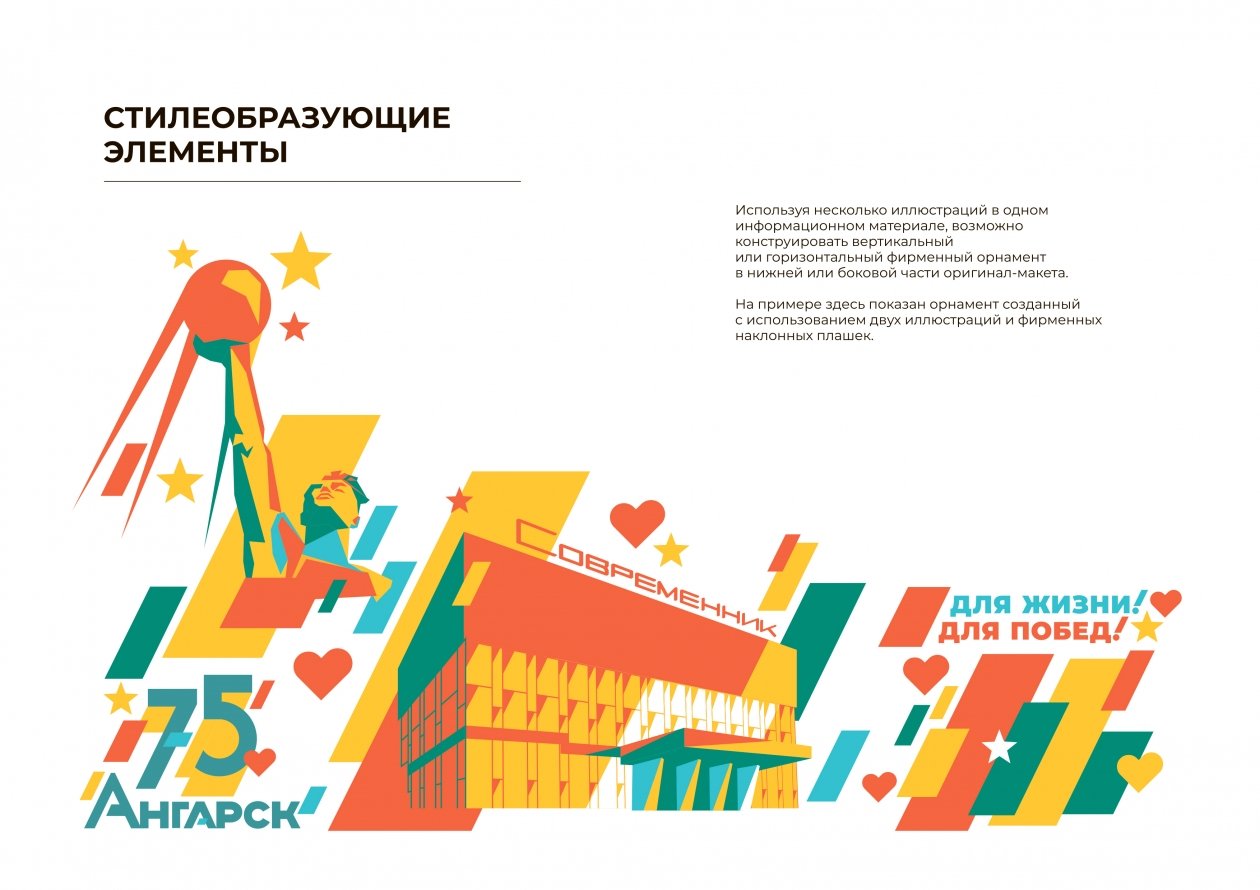 AngarskMedia, 30 января. К 75-летию Ангарска разработали брендбук, который станет основой для оформления всех праздничных мероприятий. Ключевой идеей юбилея выбран слоган "Ангарск. Для жизни. Для побед!". Он подчеркивает преемственность поколений и уважение к истории города, возведённого людьми, вернувшимися с фронта.