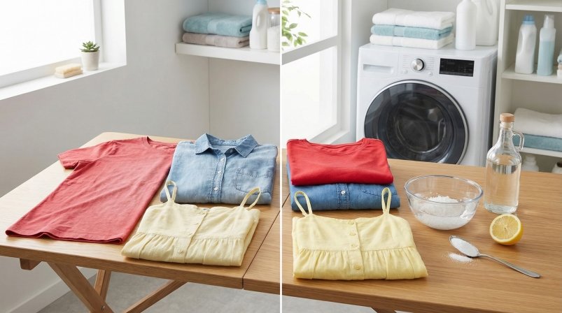 Чтобы результат держался дольше, важно соблюдать базовые правила: сортировать бельё по цвету, не использовать хлорные отбеливатели для цветных тканей, избегать сушки под прямым солнцем и придерживаться температурного режима, указанного на ярлыке. Новые линяющие вещи стоит предварительно замочить в растворе соли или лимонного сока — это поможет закрепить пигмент.