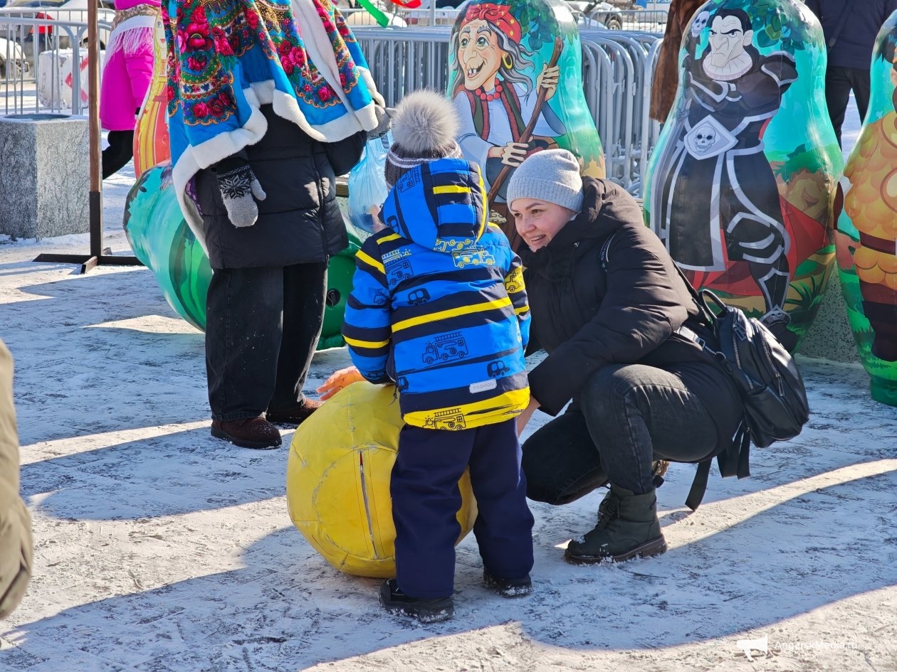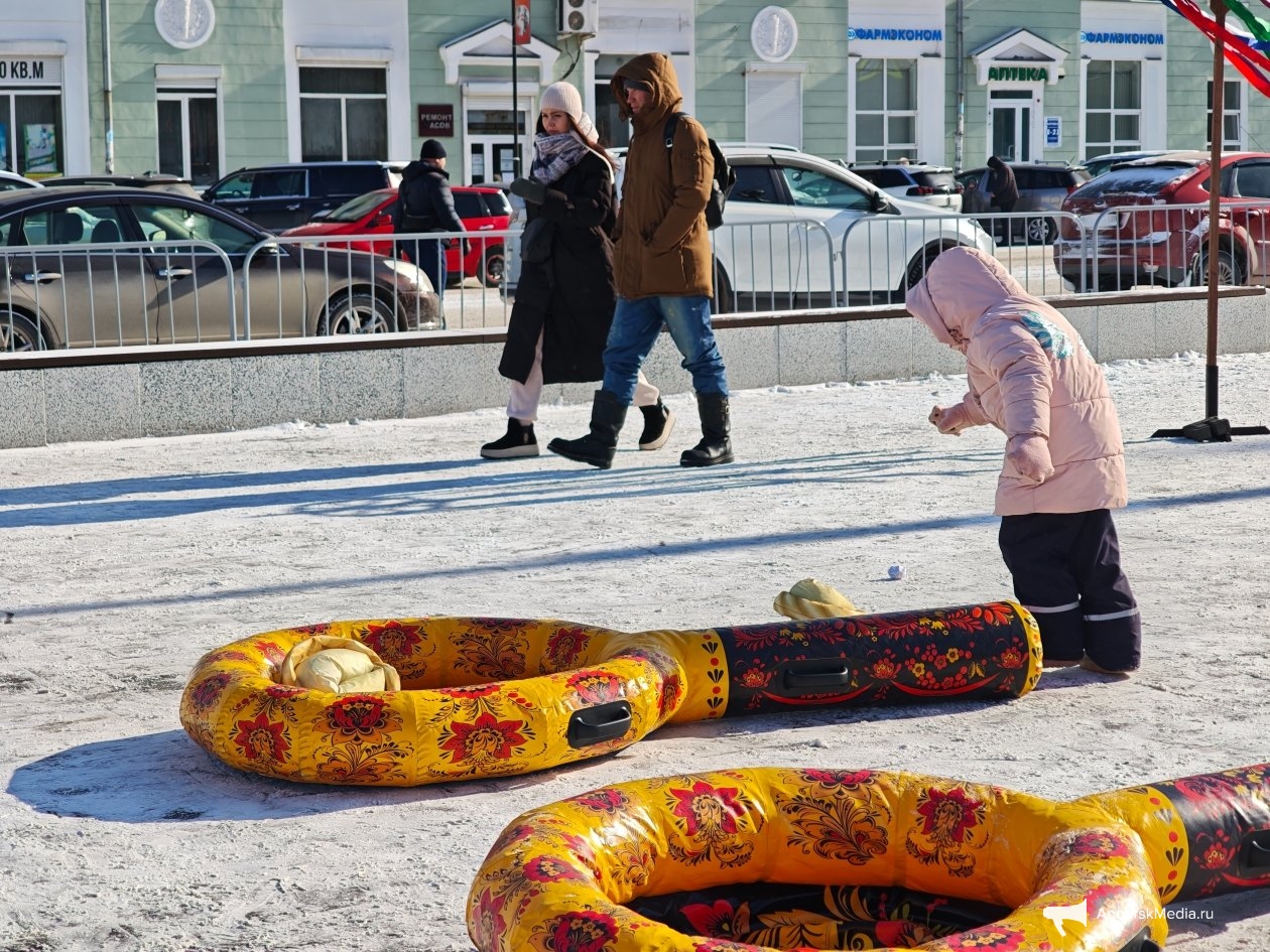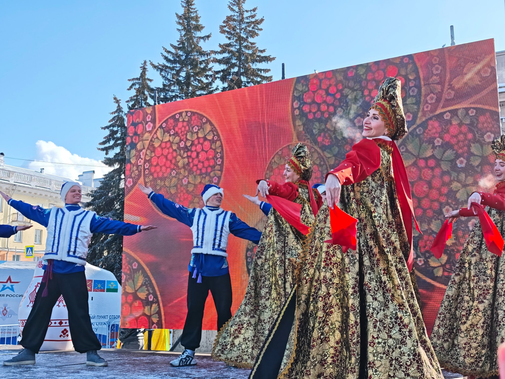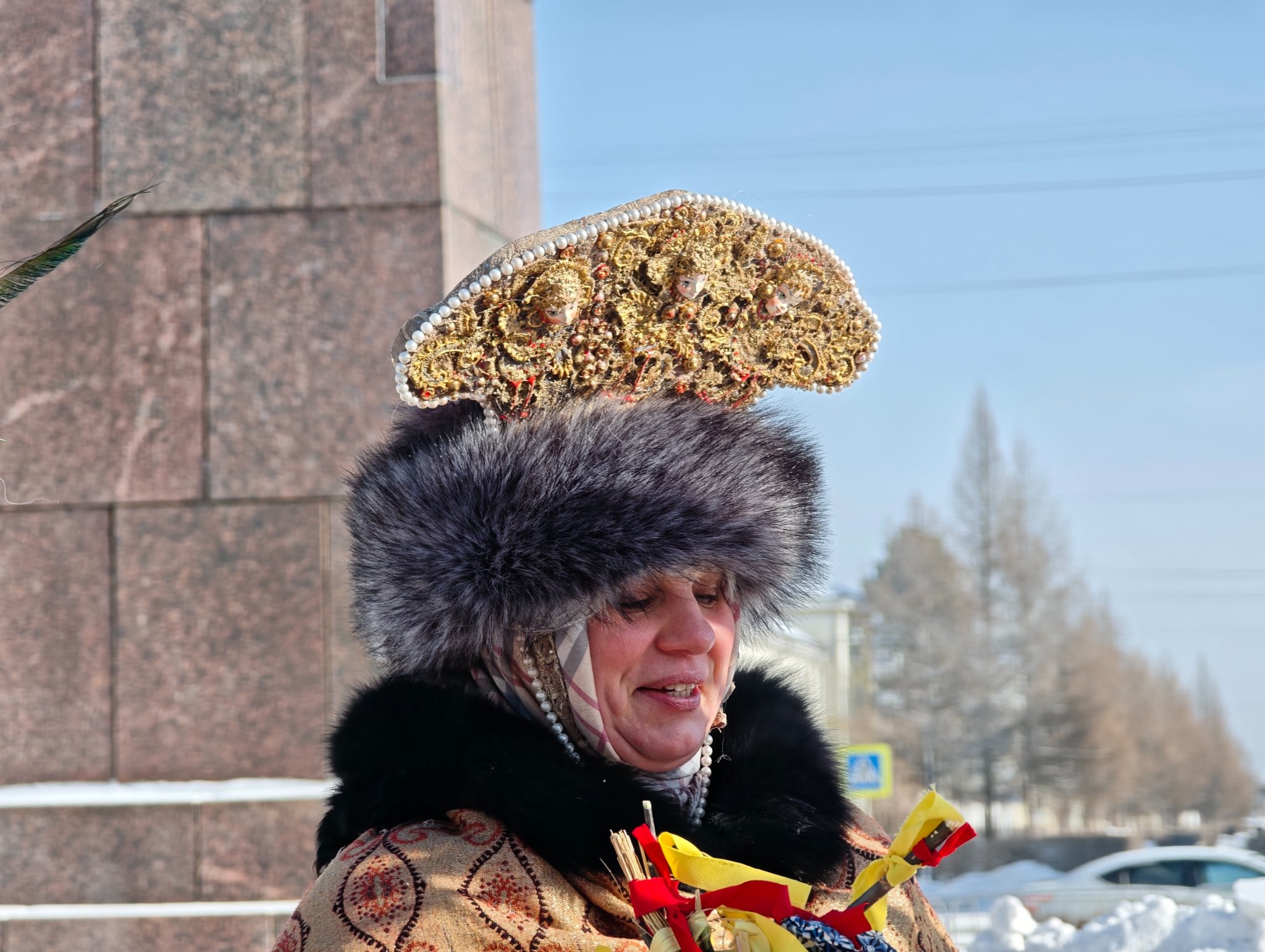На площади развернулись торговые ряды с угощениями. В воздухе витал аромат свежеиспеченных блинов — главного символа Масленицы.