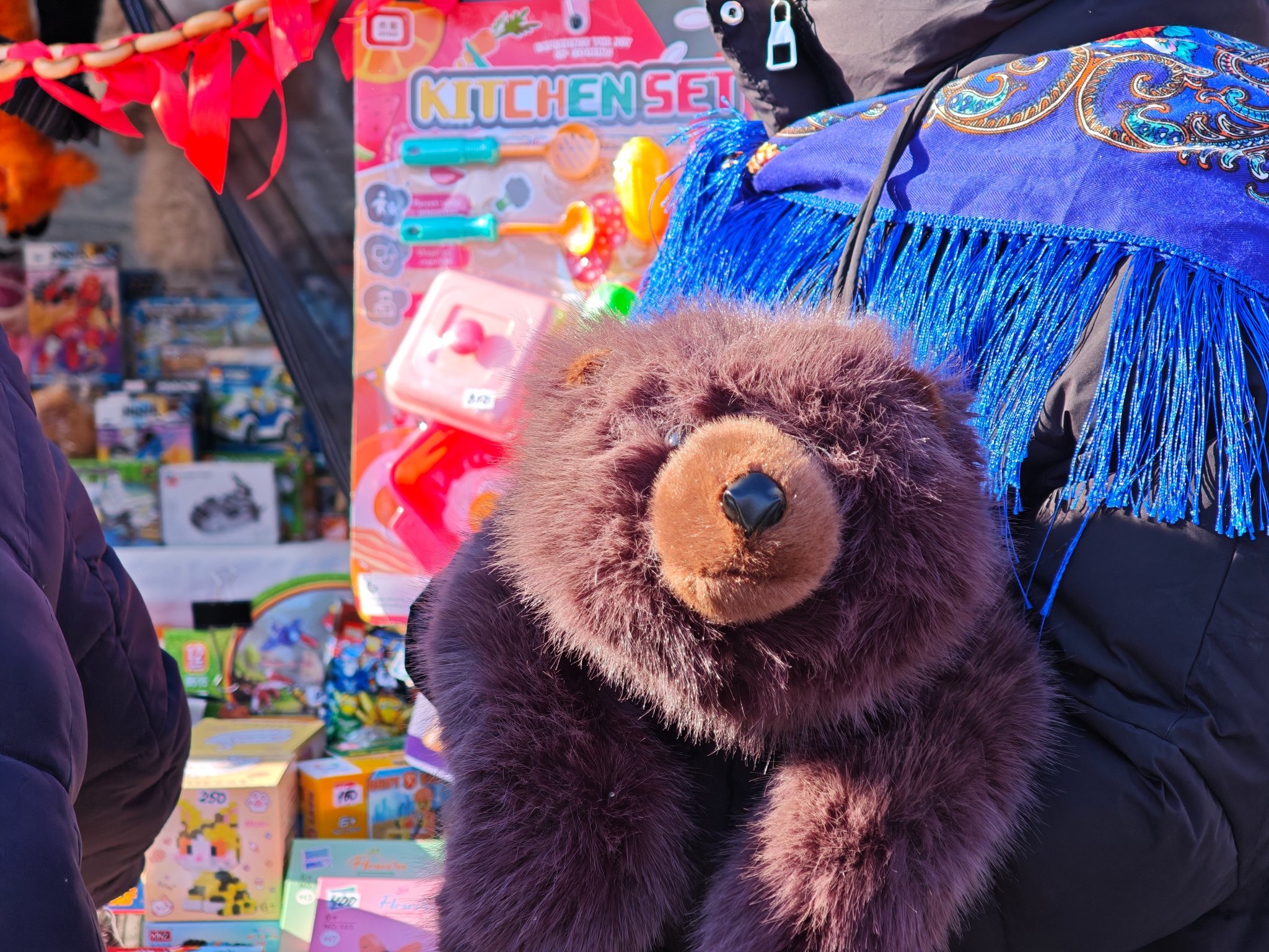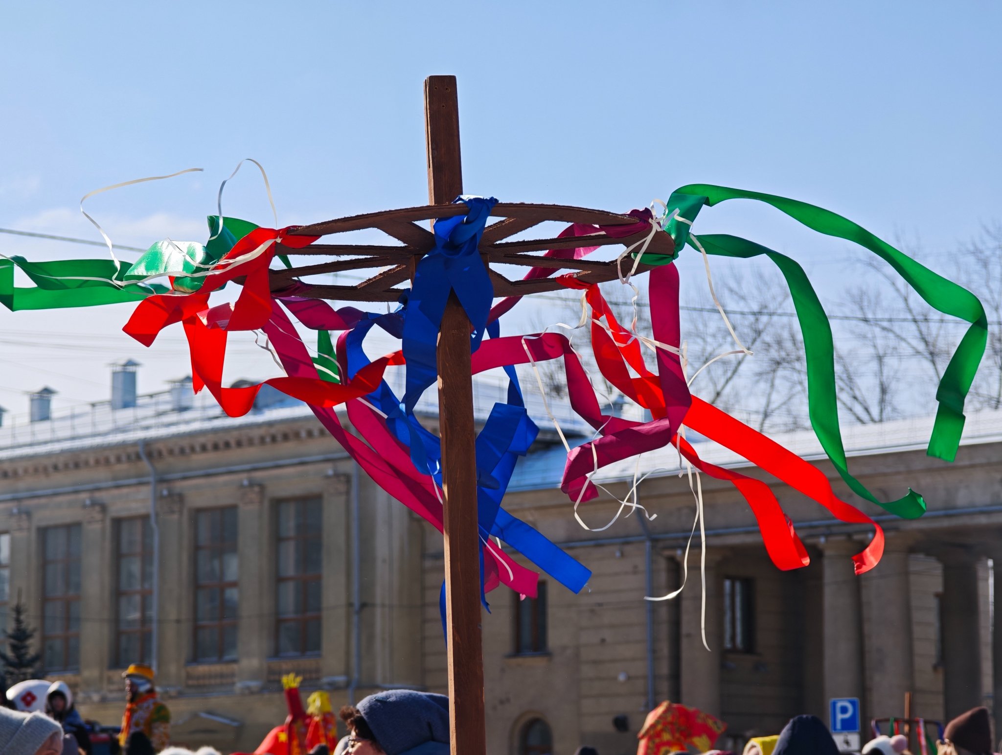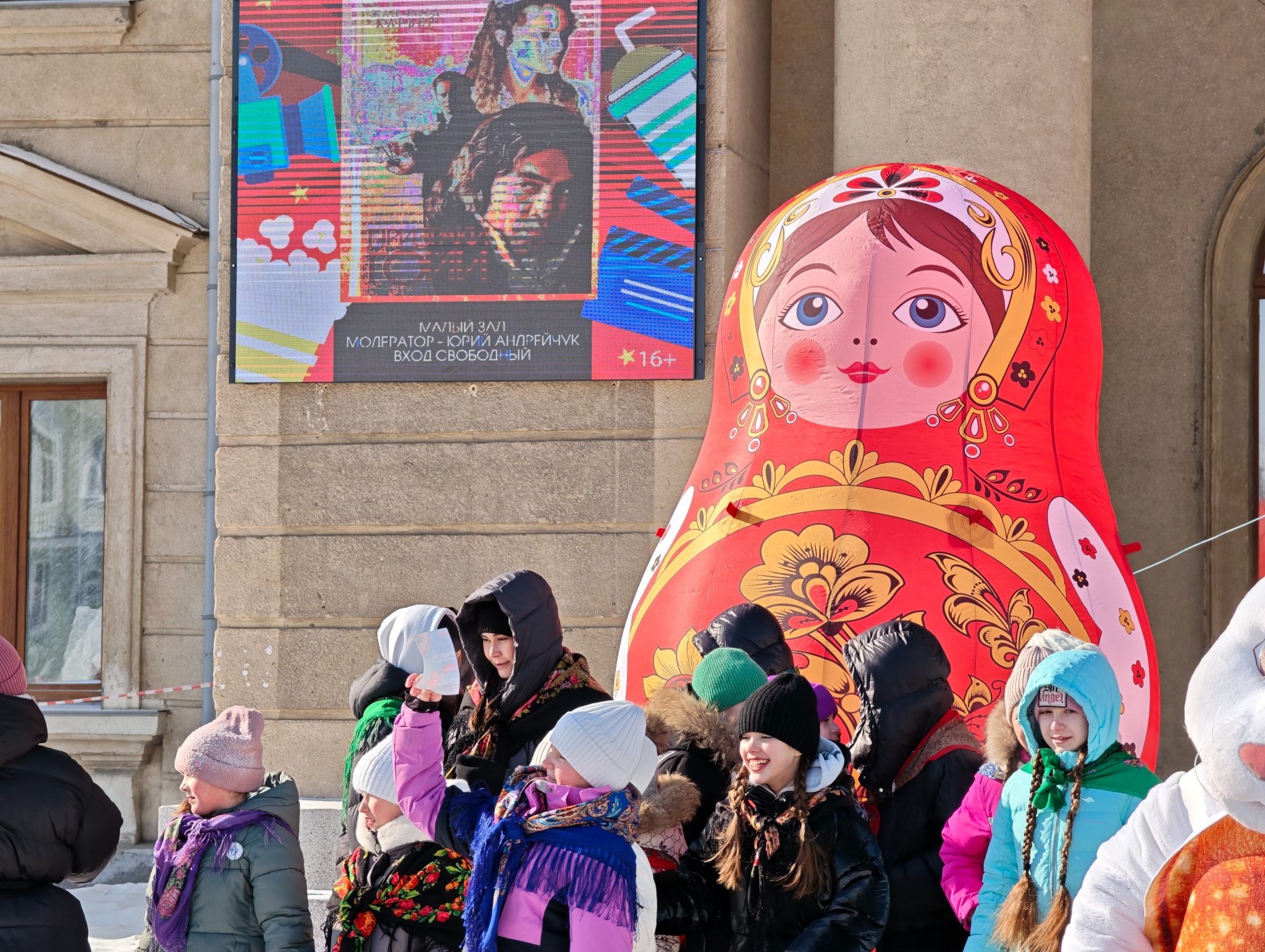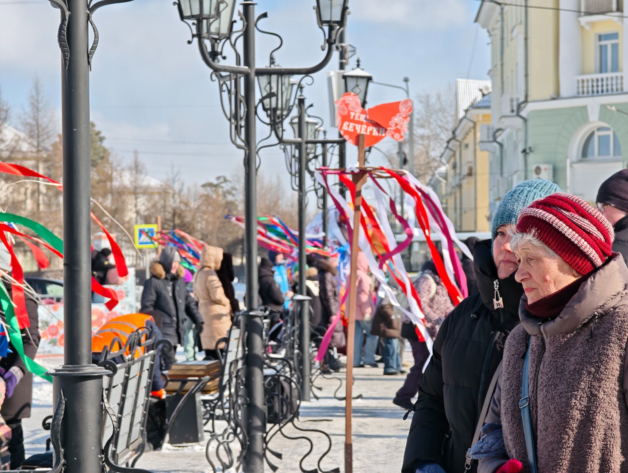 На площади развернулись торговые ряды с угощениями. В воздухе витал аромат свежеиспеченных блинов — главного символа Масленицы.