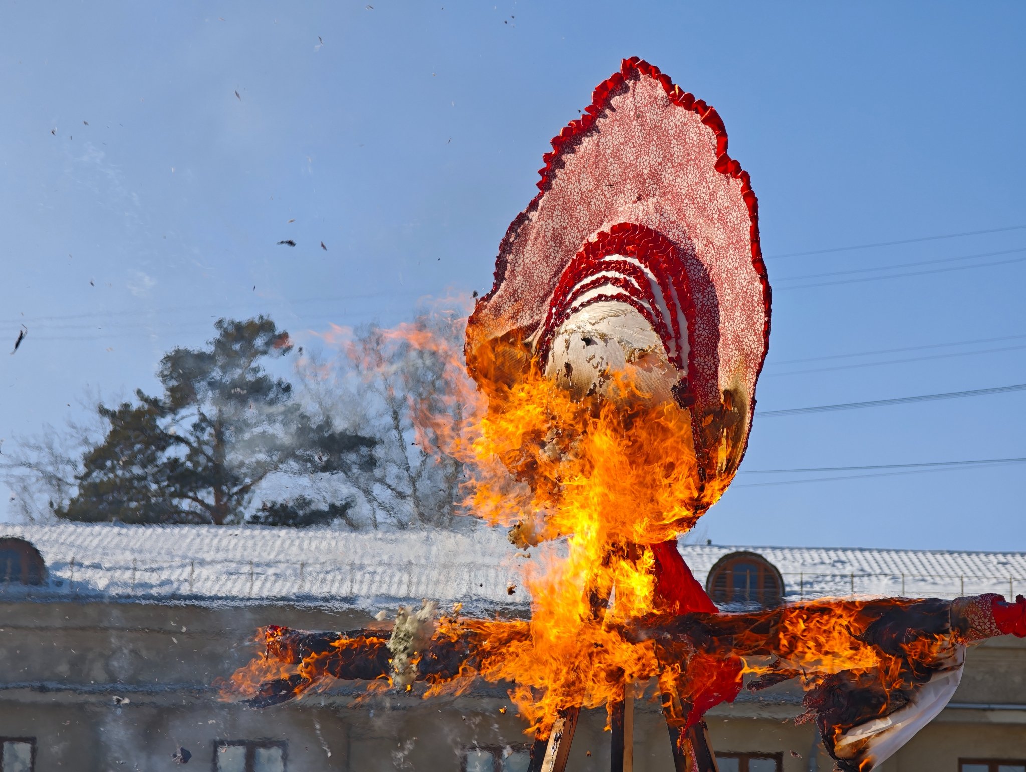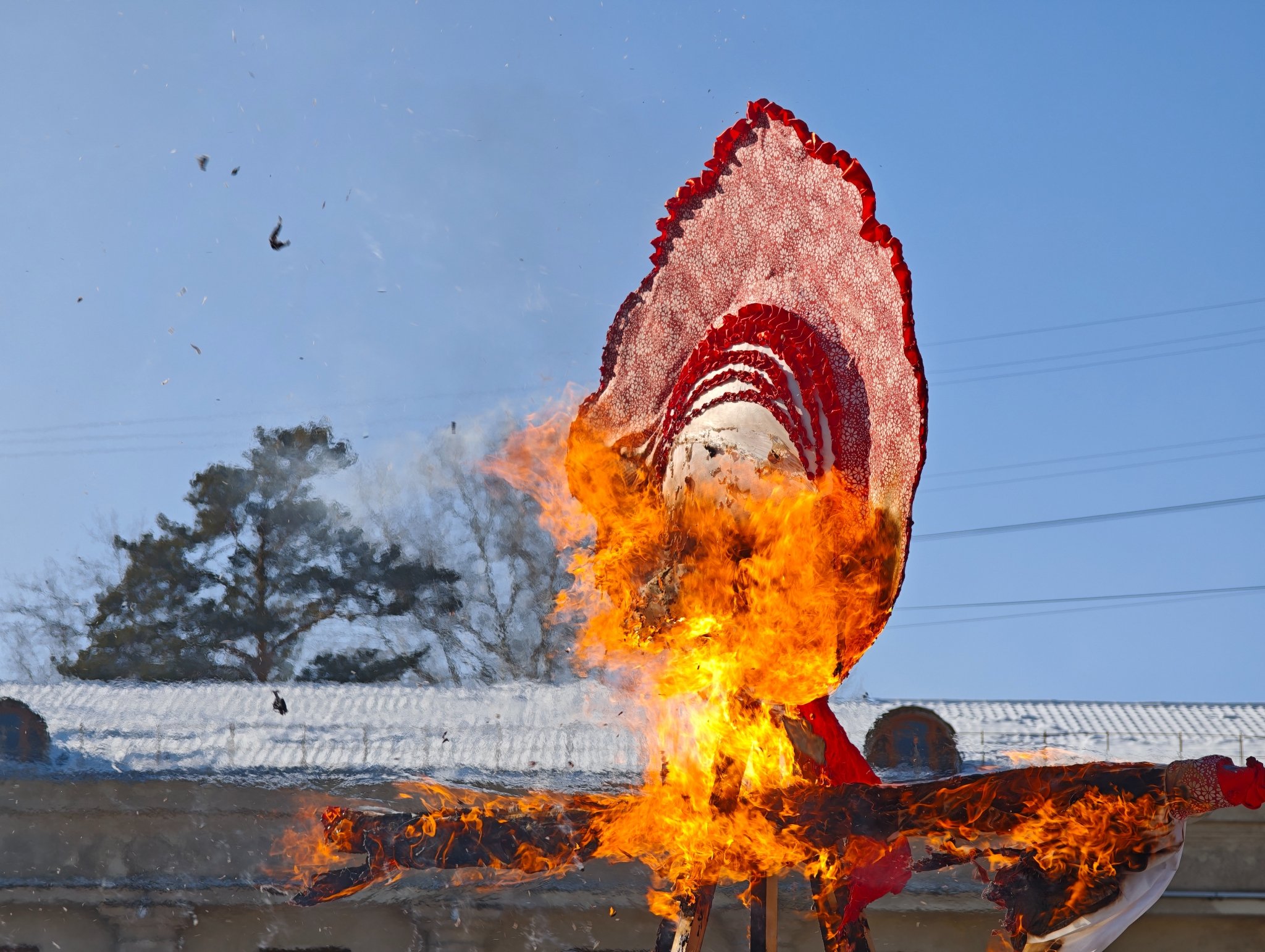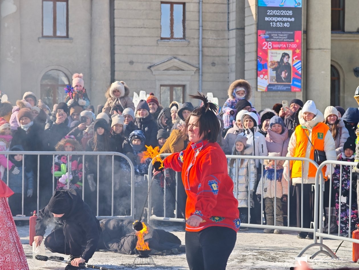 Завершилось празднование выступлением артистов файер-шоу и сжиганием чучела Масленицы.