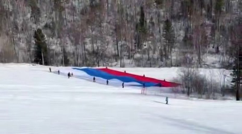 Гигантский триколор размером с футбольное поле развернули на Байкале