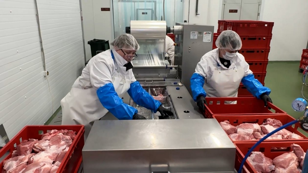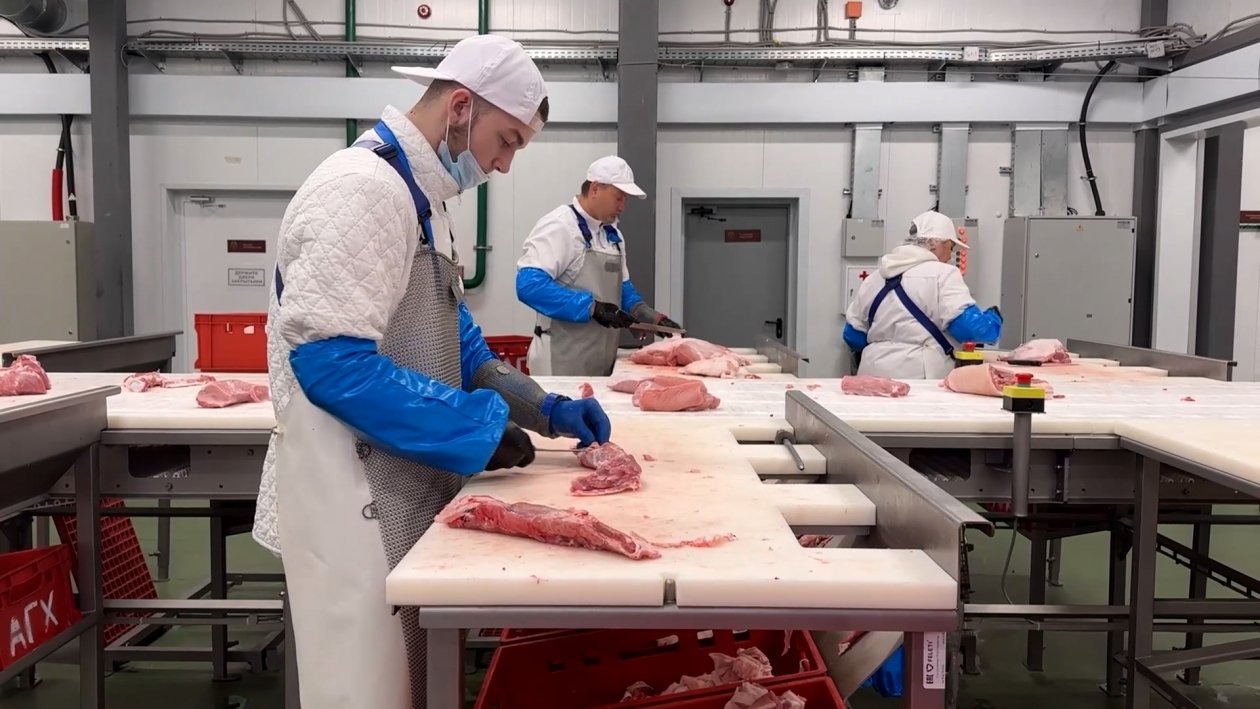 На территории агропарка с июля 2025 года работает цех по переработке мяса производительностью до 20 тонн в смену (440 тонн в месяц при полной загрузке). Подобного завода с линиями полного цикла — от полутуши до готового полуфабриката — на Дальнем Востоке больше нет. Предприятие выпускает 62 процента полуфабрикатов регионального производства и 20 процентов деликатесов. Ассортимент насчитывает более 70 наименований: крупнокусковые и мелкокусковые полуфабрикаты, продукцию в маринаде, порционные изделия в панировке, котлеты, фарш, копчено-вареные деликатесы и прочее. В этом году планируется запустить производство пельменей. Всего на предприятии трудятся 59 человек.