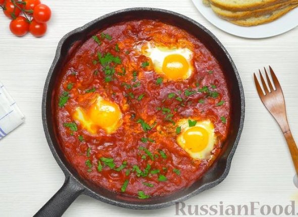 Шакшука готова! Перед подачей шакшуку посыпать мелко нарезанной петрушкой.