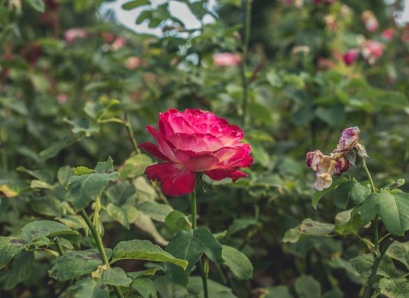 - При укрытии не используют полиэтиленовую плёнку, она задерживает влагу. Лучше подходит спанбонд. Даже в 2 слоя он пропускает воздух, предотвращает застой влаги и позволяет розам частично просохнуть до окончательного укрытия.