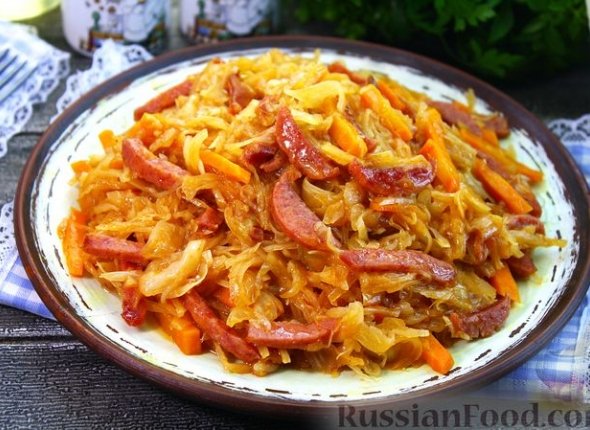18 октября. Тушёная капуста прекрасно сочетается с копчёной колбасой, которая добавляет блюду сытность и аппетитный аромат. Благодаря томатной заливке капуста приобретает лёгкую кислинку и получается очень вкусной. Это блюдо просто готовится и не требует много времени. Рецепт публикует ИА AngarskMedia.