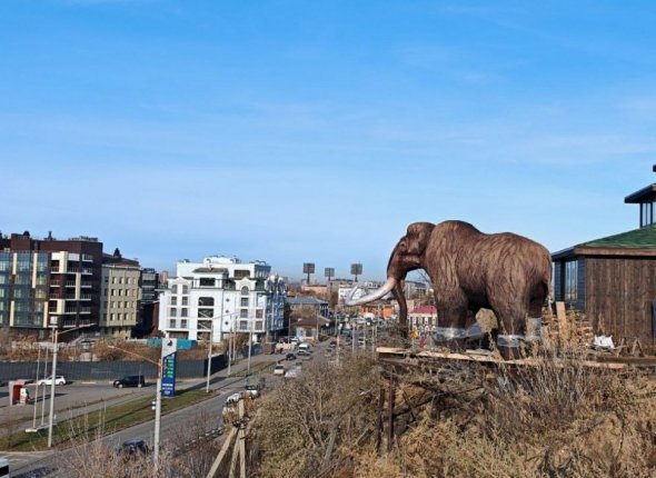 AngarskMedia, 27 октября. В Иркутске на улице Коммунистической установили монументальную скульптуру мамонта. Она расположена рядом со строящимся "Домом природы" иркутской зоогалереи.