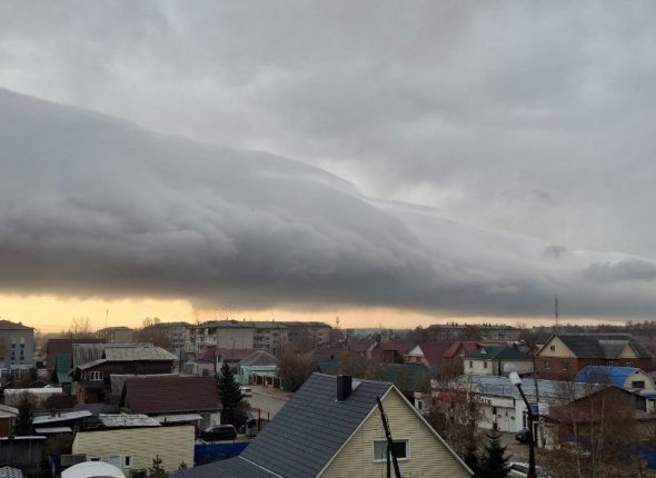 Такие облака, известные в метеорологии как roll clouds, относятся к редкому типу облаков-дуг (Arcus). Их появление связано с особенностями взаимодействия воздушных масс на границе холодного и теплого фронтов, что создает эффект вращающегося вала в небе.