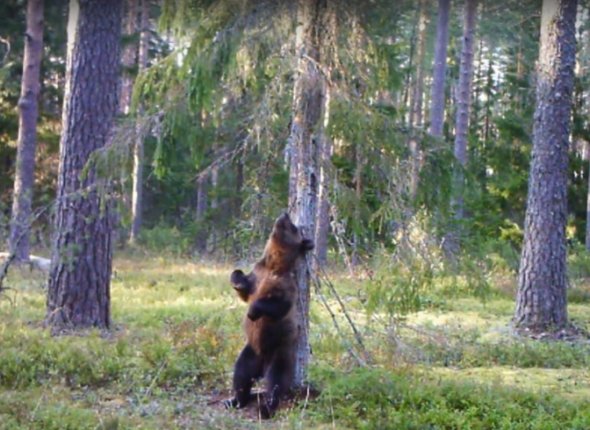 AngarskMedia, 3 ноября. В Нижне-Свирском заповеднике засняли бурого медвежонка, который "танцует" у дерева. На самом деле, такие движения — часть естественного поведения данных хищников осенью: они трутся о стволы, чтобы оставить метку, снять зуд от линьки и привести шерсть в порядок.