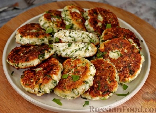 Сырники с фетой, кинзой и укропом готовы. Подаём в горячем или тёплом виде.
