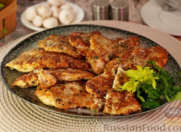 Куриные отбивные в грибной панировке готовы.