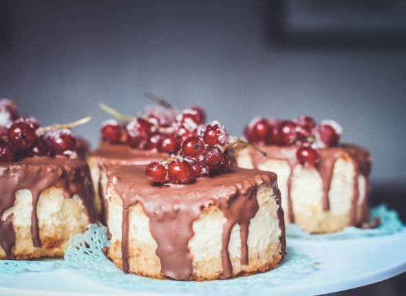 Выньте десерт из холодильника и полейте растопленным шоколадом. Поставьте в холодильник еще на полчаса. Украсьте сверху свежей клубникой или другими ягодами перед подачей.