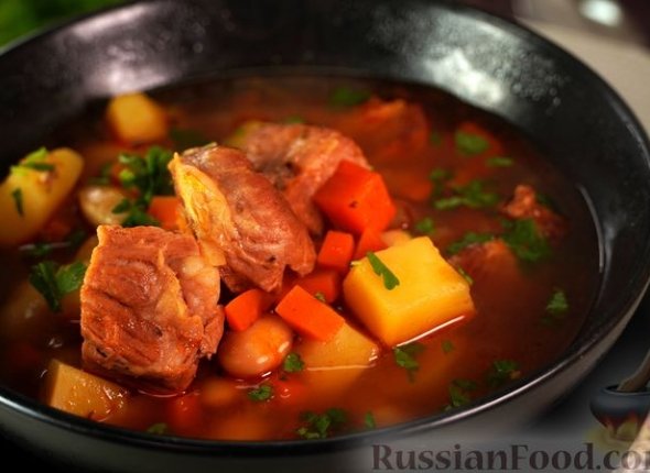AngarskMedia, 19 декабря. Насыщенный суп-гуляш готовится из мяса, овощей и фасоли. Томатная паста придаёт супу кислинку, а майоран и паприка добавляют пряный вкус и яркий аромат. Рецепт публикует ИА AngarskMedia.