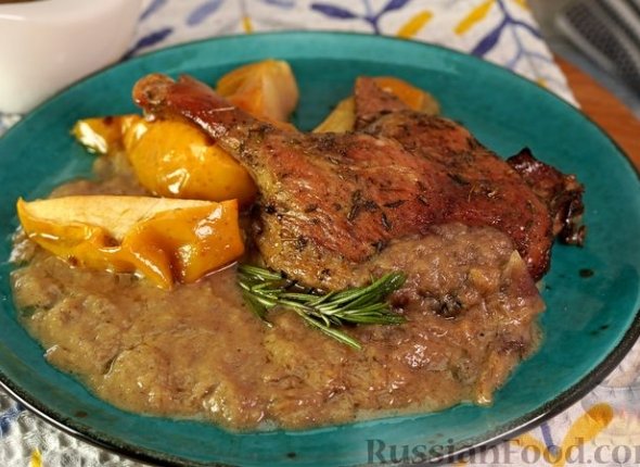 AngarskMedia, 23 декабря. Гармоничное сочетание утиных ножек с сочными яблоками и луком. Мясо утки при запекании пропитывается соками, получается сочным и мягким. Тимьян и чеснок добавляют аппетитный аромат. А запечённые яблоки с луком можно превратить в соус, который отлично дополнит утиное мясо. Рецепт публикует ИА AngarskMedia.