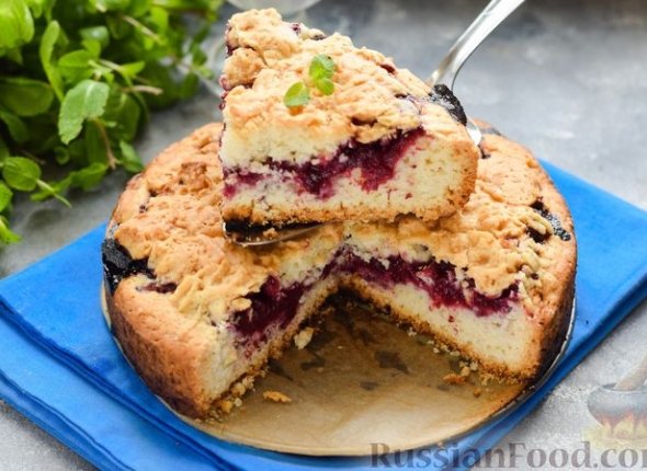 Постный тёртый пирог с вареньем готов — подавать его можно тёплым или холодным.