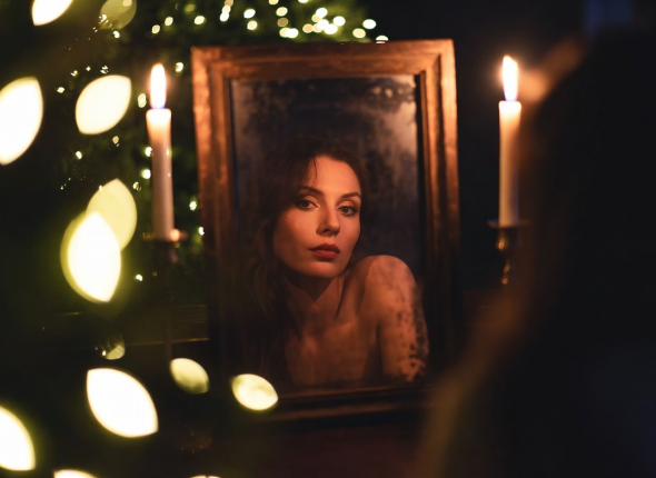 Одним из самых известных и распространённых способов гадания на Рождество является использование зеркала. Этот метод достаточно прост: в полночь перед Рождеством, по старинной традиции, женщины садились перед зеркалом с зажженной свечой и пытались увидеть в отражении своего будущего мужа или судьбу на следующий год. Если в зеркале появлялся чей-то силуэт, это считалось знаком скорой встречи с этим человеком.