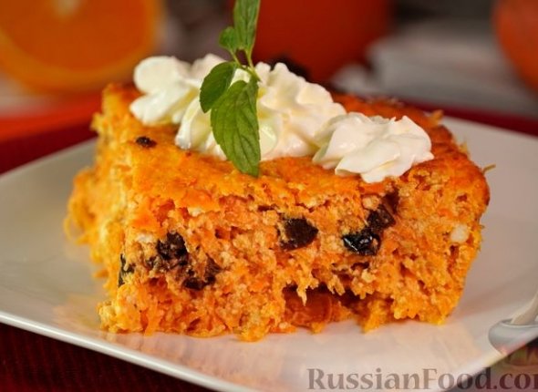 Морковно-творожная запеканка с черносливом - сахара минимум, вкус как у роскошного десерта