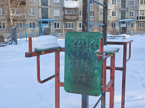 Во время прогулки в 177-м квартале внимание корреспондента привлек внешний вид площадок во дворах домов №10, №9 и №19: металлические конструкции местами покрыты ржавчиной, краска на качелях и лазалках облупилась, на отдельных деталях элементов заметны сколы. Кроме того, многое игровое оборудование исписано различными надписями, которые еще больше предают площадкам заброшенный вид.