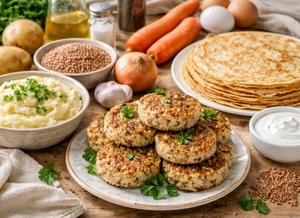 Один из самых простых способов накормить семью — котлеты из круп. Варёная гречка, рис, горох или чечевица превращаются в полноценное блюдо, если добавить лук, морковь, немного картошки и специи по вкусу. Если есть яйцо — используйте его для связки, если нет — тоже не страшно. Слепите котлеты, обжарьте на небольшом количестве масла, и полноценное горячее готово. Подать их можно с гарниром из картофельного пюре, приготовленного на картофельном бульоне: просто растолките или взбейте картошку в блендере, добавьте соль и перец — вкус почти как с молоком, но без лишних затрат.