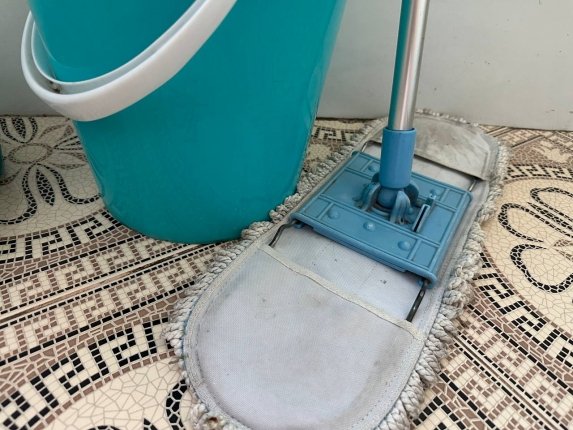Лучше размещать её в хорошо проветриваемом месте или рядом с источником циркуляции воздуха, чтобы она быстрее высыхала. И уж точно не стоит оставлять швабру в ведре или в чистящем растворе.