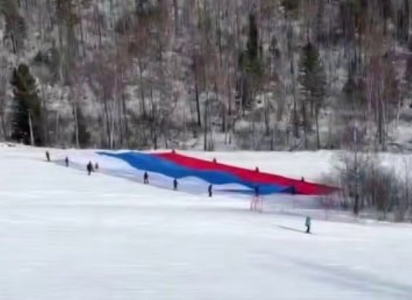На берегу Байкала развернули один из самых больших триколоров в День защитника Отечества. В посёлке Листвянка прошёл юбилейный, пятый по счёту флешмоб, приуроченный к 23 февраля (0+). Как сообщили в телеграм-канале (18+) группы компаний "Истлэнд", главным моментом акции стало торжественное развёртывание гигантского российского флага. Его размеры сопоставимы с футбольным полем.
