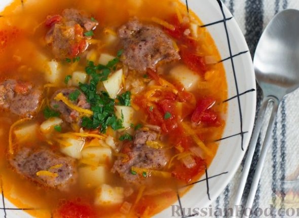 Легкий овощной суп с необычными фрикадельками, которые готовятся из красной фасоли, — отличный способ разнообразить повседневный обед. Рецепт публикует ИА AngarskMedia.
