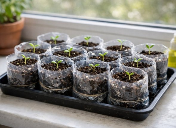 Если такое произошло, важно дать почве просохнуть. Можно переставить рассаду поближе к источнику тепла (но не вплотную), чтобы ускорить испарение влаги. Также помогает простой приём: добавить в горшки немного прокалённого песка — он впитает лишнюю воду, после чего его аккуратно убирают.