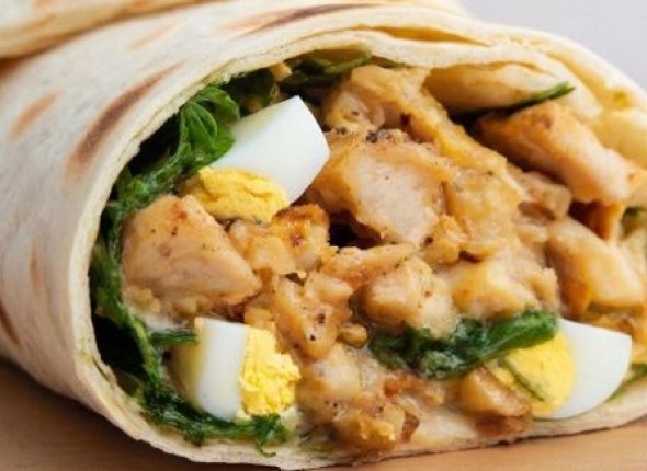 Лаваш — отличная основа для быстрых блюд. В этом рецепте самый важный ингредиент — маринованный лук. Он даёт свежесть и приятную кислинку.